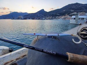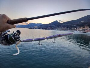 Montando invece la codina e aumentando la velocità di recupero, preferibilmente a canna alta, lo Strega cambia completamente personalità. L’esca accelera in superficie creando turbolenze e scatti improvvisi che imitano un’aguglia in fuga. È una configurazione estremamente efficace sulle scogliere esterne, capace di stimolare attacchi aggressivi da parte di barracuda, pesce serra, lecce amia e lampughe.